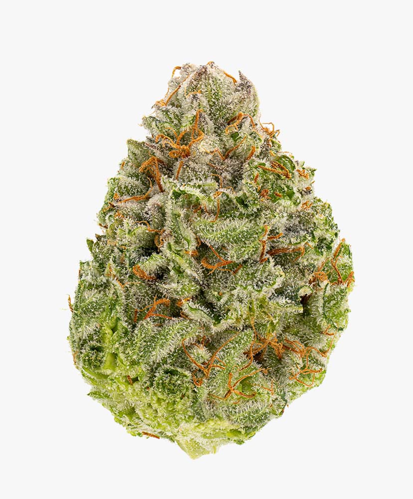 The flavour profile is a combination of earth, pine needles, and mint, while the bud has a light green appearance with brown hairs and a layer of crystals.